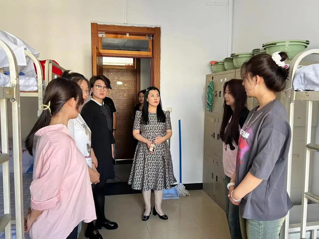 初秋进行时,遇见“新”上人。为深入了解2023级新生思想动态、报到情况及入学感受,及时为学生答疑解惑,让新生们第一时间感受到学校的关怀与温暖,帮助新生尽快地适应大学生活。2023年9月3日上午,欧冠官方网站党总支副书记赵林楠,副院长汪淑双,2022级辅导员鞠亚林,2021级辅导员韩金凤,一起走进新生宿舍,为萌新们送去关怀和慰问。