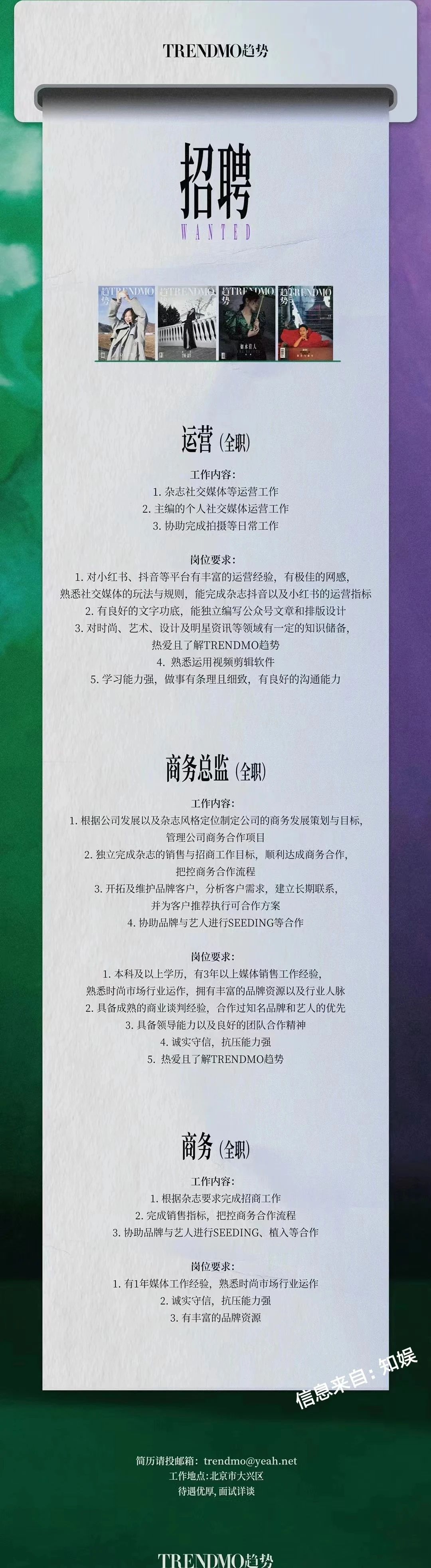就业指导丨《TRENDMO趋势》招聘运营、商务总监、商务