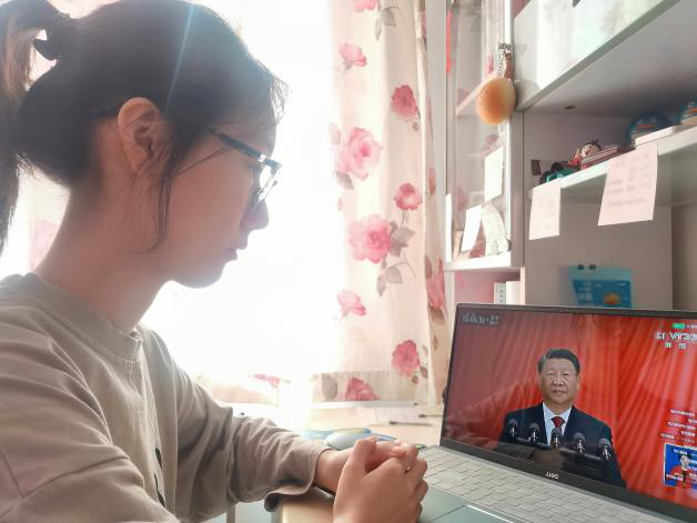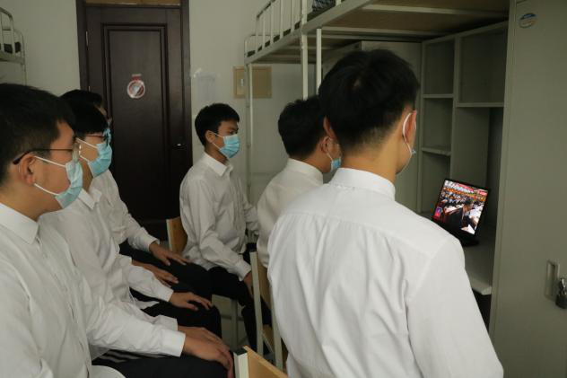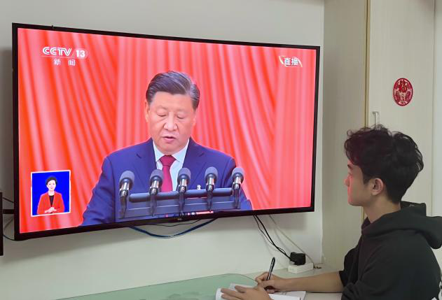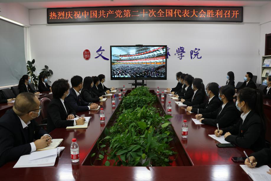 欧冠官方网站党政领导班子成员、辅导员及学生党员代表在汇文楼326会议室集中观看开幕会;36名学生代表在313教室收看开幕会;其余在校和居家师生通过广播、电视、网络等方式收听收看党的二十大开幕会直播盛况。