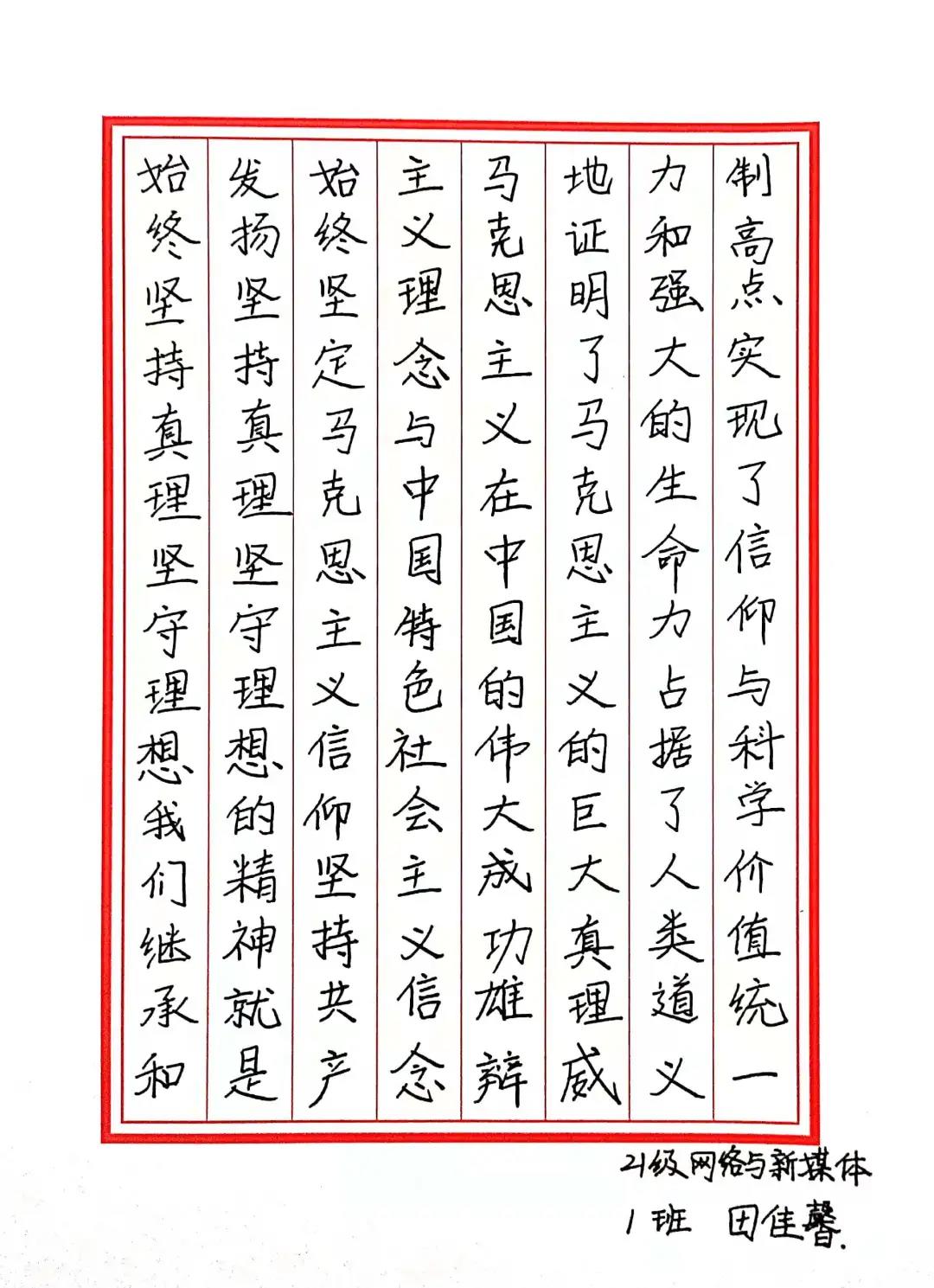 此次三笔字大赛的举办不仅丰富了校园文化生活,提升了学院同学的专业素质,而且对同学们传承、弘扬中华优秀传统文化起到了画龙点睛的作用。相信同学们通过此次活动会收获独有的感悟与心得,在书写自我的同时得到一次春雨润物般无声的成长。
