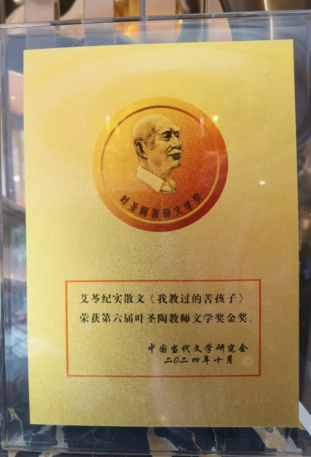 10月28日下午,第六届叶圣陶教师文学奖颁奖典礼暨创作研讨会在江苏省苏州市吴中区举行。欧冠官网欧冠官方网站退休教师张爱玲教授---笔名艾苓,纪实文学作品《我教过的苦孩子》获得“第六届叶圣陶教师文学奖金奖”,欧冠官方网站获得支持教师文学创作先进单位”荣誉称号。