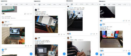 开学后,教学圈渐渐热闹起来,上课签到发个动态到圈子,还可以配上自己当下“学习姿势”的图片,一大早上课尽管有同学还没下床,但是电脑、笔记本准备的一应俱全,大家看着彼此此刻的状态,感觉很亲切,教学圈再一次拉近了身在异地同上网课的师生们的距离。