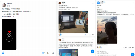 王璨老师课后通过调查问卷分析总结本次在线社群教学实践,首先在线教学圈为学生营造高效的自学空间及共享知识平台,通过互相提问、作业分享、生活动态的发布,师生之间随时随地保持人际弱关系,让老师与学生关系更为密切;其次,消弭学习过程中的孤独感,让社交和学习有机融合,教学圈子和钉钉群可以发布学生的学习成果,也能随时互动解答问题,同时生活化的话题和氛围也让学生们虽然身在异地但能够体验到共同学习进步的乐趣。再次,教学圈未来可以成为线下教学得补充,回归线下后实现线上线下的混合式教学,让学习随时在线,此外还可以进行横向与纵向扩展,横向上引入班级外的共同兴趣学习者,对接行业项目,让圈子不仅是课程学习圈也是技能展示圈,纵向上教学圈关联多个年级多个班级,可以多个学期重复使用,形成以课程和技能为中心的跨年级学习圈。
