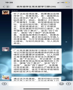 会后,党员们纷纷表示,聆听大家分享的故事中回忆起抗疫历程中的点点滴滴,深受感动,备受鼓舞。欧冠官方网站的全体党员在抗疫过程中用实际行动践行着共产党员的初心与使命,彰显着共产党员本色与担当。目前,疫情防控已经进入常态化阶段,大家将疫情防控工作作为践行“两个维护”、践行“初心使命”、践行“为民宗旨”和体现“为民情怀”的一次最重要检验,继续发挥党员先锋模范带头作用,自觉同以习近平同志为核心的党中央保持高度一致,坚决打赢打好疫情防控阻击战,以饱满的热情投身教书育人工作,为学校发展贡献自身的力量。