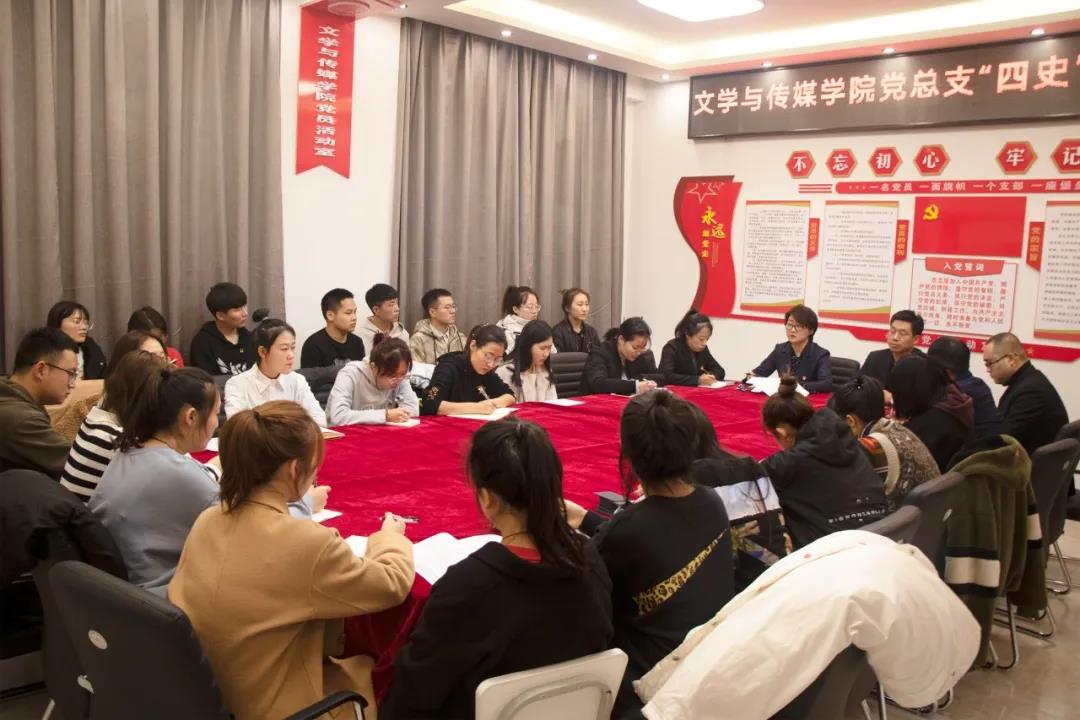 10月27日下午,欧冠官方网站党总支书记唐国忠主讲“四史”党员专题培训班第一课,领学了《中国共产党支部工作条例(试行)》,党总支副书记赵林楠主持本次党课,各年级辅导员、全体学生党员参加党课学习。