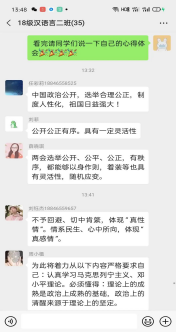欧冠官方网站各班级在微信、钉钉等多个平台开展本次团日活动。同学们围绕两会相关热点展开深刻讨论,并在线上观看了“两会”视频,深刻体会了“两会”精神、“四进四信”重要讲话精神和社会主义核心价值观,对国家发展现状和未来发展规划也有所了解。本次主题团日活动聚焦两会热点,学习两会精神,作为当代大学生的我们更要努力提高自身思想政治觉悟和科学文化水平,增强使命意识和责任意识,为实现中华民族伟大复兴的中国梦贡献青年力量。