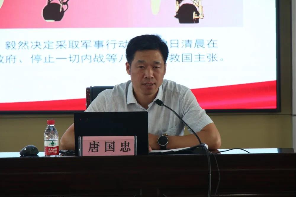 在党课中,唐国忠表示中国共产党的历史是一部红色政党从星星之火终成燎原之势的发展史,是一部无产阶级从筚路蓝缕走向自主自强的奋进史,更是一部中华民族不忘初心迈向伟大复兴的辉煌史。中国共产党是在半殖民地半封建的社会苦难黑暗中诞生,仅有十三位代表参加的中共一大宣告中国共产党的成立,标志着中国革命有了伟大开端,有了领导核心,有了崭新的道路和前途;在与帝国主义、封建主义、官僚资本主义的浴血奋战中逐渐成长,领导工人运动、推动形成统一战线、创建红色根据地、开展土地革命,一个中国化的马克思主义政党站在了世界面前;又是在一个一穷二白、百废待兴的新中国里领导人民走向富强,完成三大改造、明确经济中心、建设小康社会,带领着各族人民阔步迈入新时期的征程。就是因为坚守住了使命初心,在世界风云变幻的100年里,只有中国共产党能取得这些举世瞩目的伟大成绩。