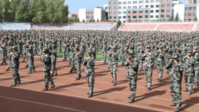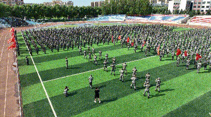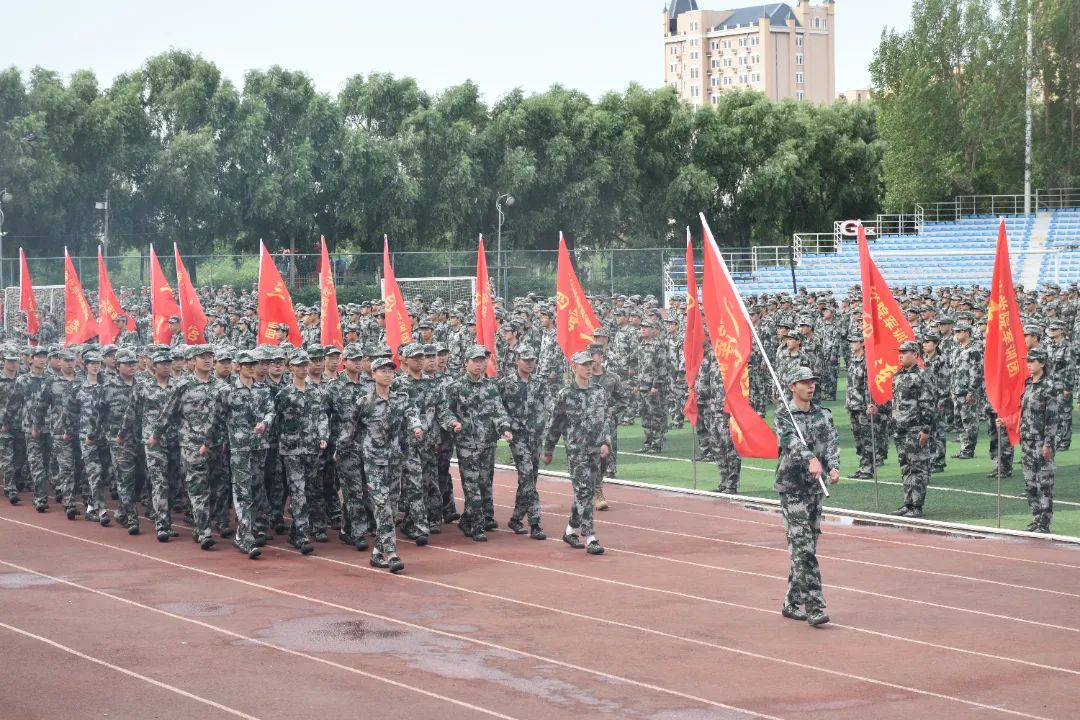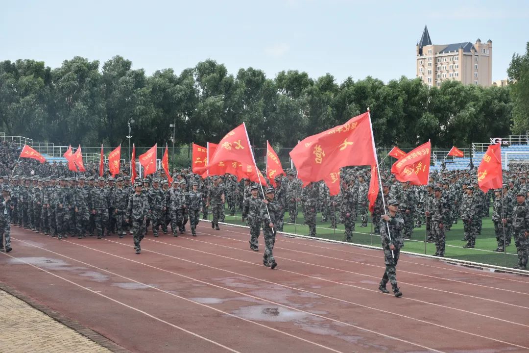 队整齐,步履坚定,军训团全体成员在国旗护卫队的引领下入场,依次通过主席台接受检阅。