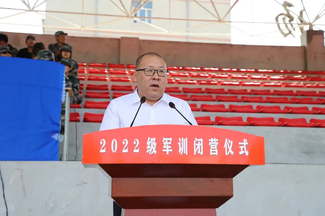 赵东江宣读《关于表彰2022级学生军训优秀教官、优秀学员、优秀寝室、内务标兵的决定》。校领导为获奖集体和个人颁奖。