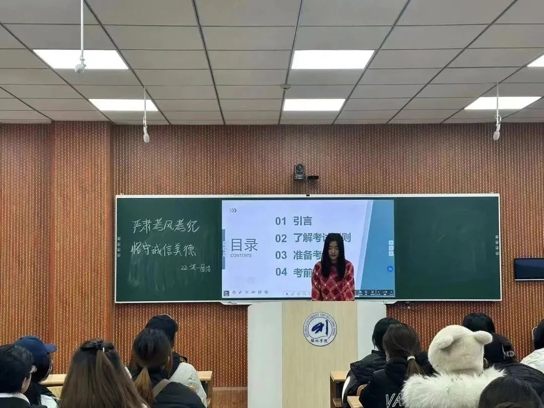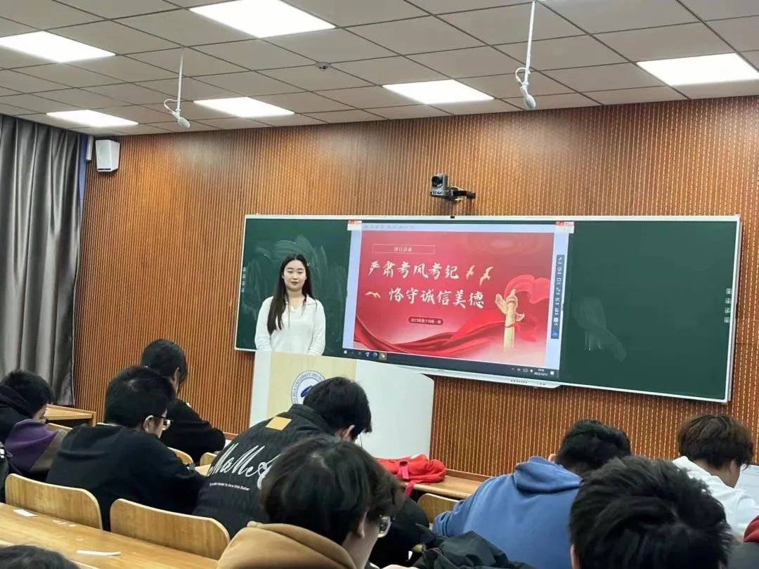 本次主题团日活动分别从诚信考试的重要性、失信的危害、规范考试行为及个人考前疏导四个方面展开。各团支部首先介绍了本次期末考试安排的相关内容,通过案例分享强调了诚信考试与个人品德发展的关联,随后详细讲解了《国家教育考试违规处理办法》《欧冠官方网站学生考试违规处理办法》《欧冠官方网站学生管理规定》中关于考试违纪的处分规定,明确考试违规违纪行为的严重后果,规范学生的考试行为,助力学生树立正确的考试观和价值观。会后,与会学生纷纷表示深刻领会到了诚信考试的重要性,接下来会以积极认真的态度进行期末复习,诚实守信地面对考试,将诚信考试内化于心,外化于行。