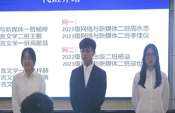 会议伊始,殷跃向新生进行自我介绍 ,随后,各班级代班学长学姐进行自我介绍。