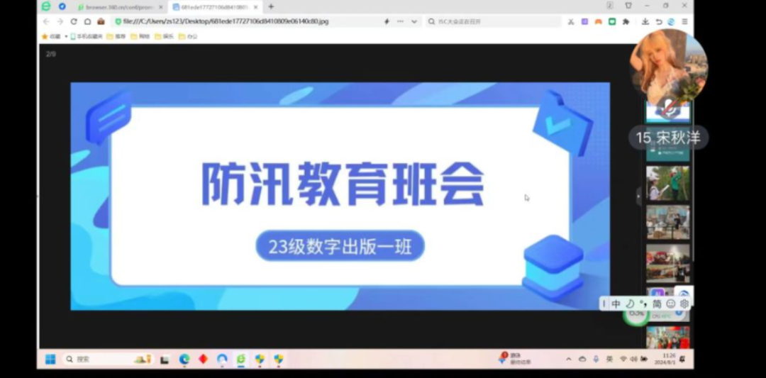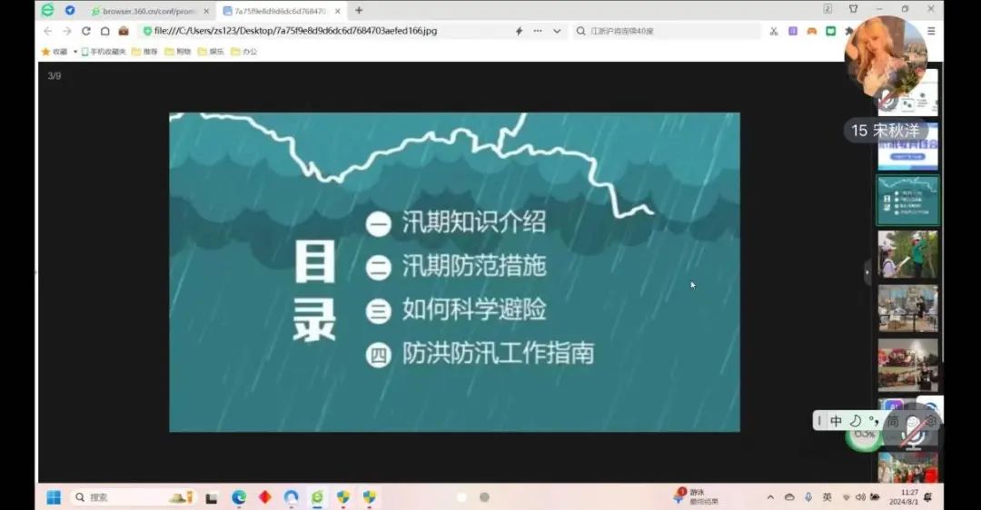 近期强降雨或连续性降雨等恶劣天气频繁发生,容易引发洪涝、泥石流、滑坡,大风等自然灾害的发生。为了预防和杜绝安全事故发生,进一步增强防汛意识,切实保障生命安全,确保广大学生安全、愉快地度过暑假,由辅导员于小庆带队,采用线上的方式,欧冠官方网站各班就开展学生防汛教育与提示工作召开班会。