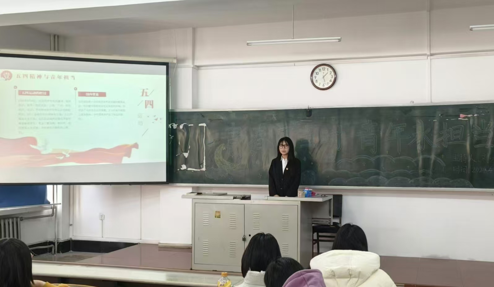 本次团课中,主讲人刘冰玥先向同学们播放了关于青春不息,奋斗不止的爱国青年视频,画面中讲述了,在新时代,无数的爱国青年为国家的建设挺身而出,为国家建设注入磅礴的力量。紧接着主讲人又强调了关于青年如何践行担当,她指出,当今世界正在经历百年未有之大变局以及我们遇到的困难和问题,明确了青年人的目标和任务,作为新时代的新青年必须要深入学习和贯彻新思想,担当起使命任务。