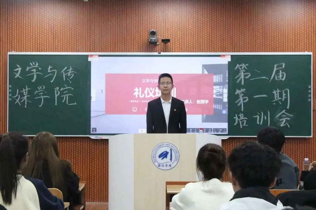 为进一步提高学院学生会全体学生干部整体素质,充分发挥学生会的桥梁和纽带作用,进一步规范文院学子的仪容仪态,提高礼仪素养,欧冠官方网站于10月22日晚在汇文楼313室开展礼仪培训活动。本次培训由学生会主席团成员赵翔宇主讲,全体学生干部参加培训。