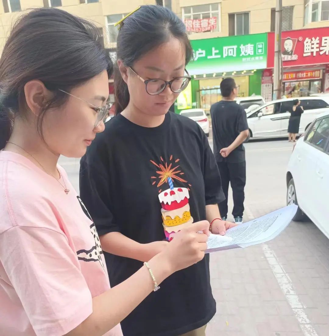 在本次社会实践活动中,王心洁同学将宣讲时间定为7月13日,地点则选定了黑龙江省肇东市肇东一中附近,这个当地人流量最大的县城街道。