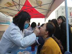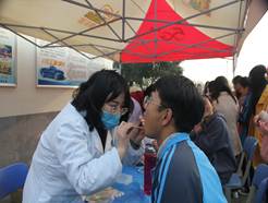 口腔专业党怡蕾、薛莹老师在现场进行口腔常规检查及口腔健康的宣教,并且提供现场健康咨询活动解决同学们近期的一些身体状况。