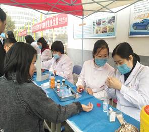 2019年11月7日16:00,医学技术学院教工党支部在足球场西侧小广场举行了“发挥党员模范作用,保障师生健康发展”关于“不忘初心,牢记使命”主题教育义诊志愿服务活动,学院教工党员参与,得到全院师生的积极响应。
