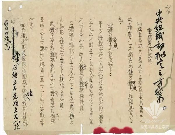 1950年中共中央组织部拟定的党旗制作方案。