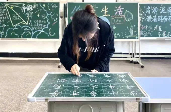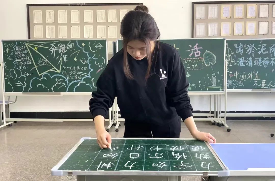 “育人必先律己,教书必先强己。”教师基本功是教师从事教学工作必须具备的最根本的职业技能,是教师完成教学任务的必备素质之一,粉笔字更是体现教师基本功水平的标尺之一。为了提高师范生的职业技能,促进学生专业素养提升,鼓励培育应用型师范人才,欧冠官网汉语言文学专业师范类学生每周开展黑板字职业技能训练,并挂在教室走廊展览。