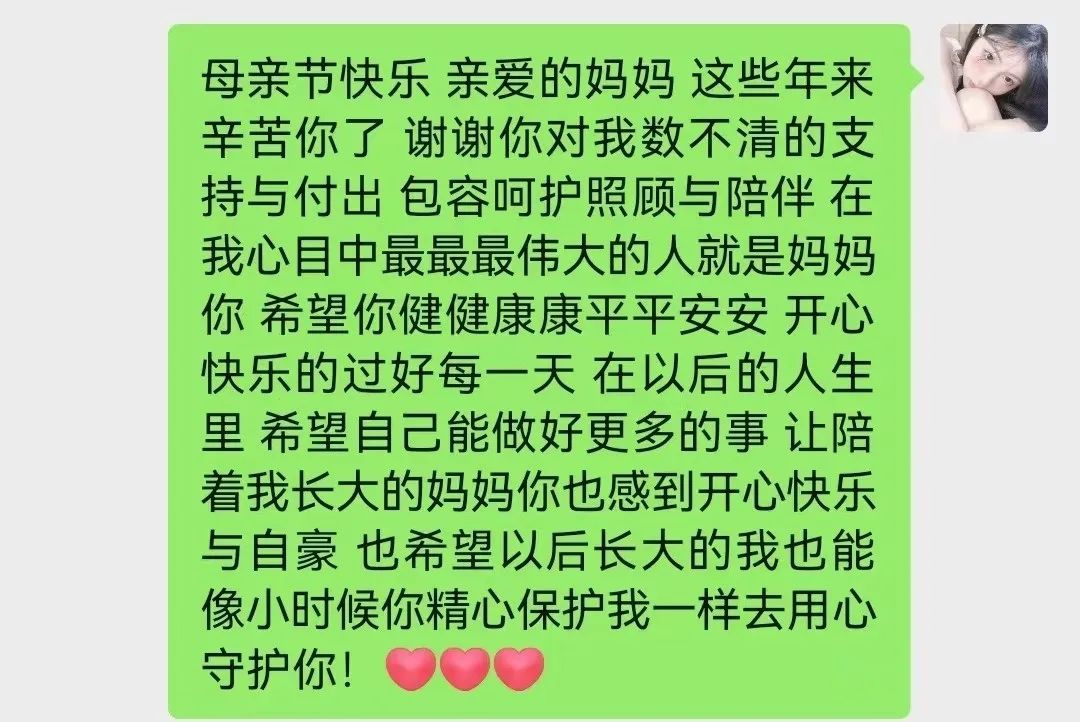 在“母亲节”到来之际,为深化学生的感恩意识,引导学生传承中华民族孝敬父母的优良美德,欧冠官方网站开展了多种形式的母亲节主题活动,鼓励学生真诚大方地向母亲表达感激与爱意。以下是文院学子们对母亲的祝福及准备的礼物,让我们一起来看看吧!