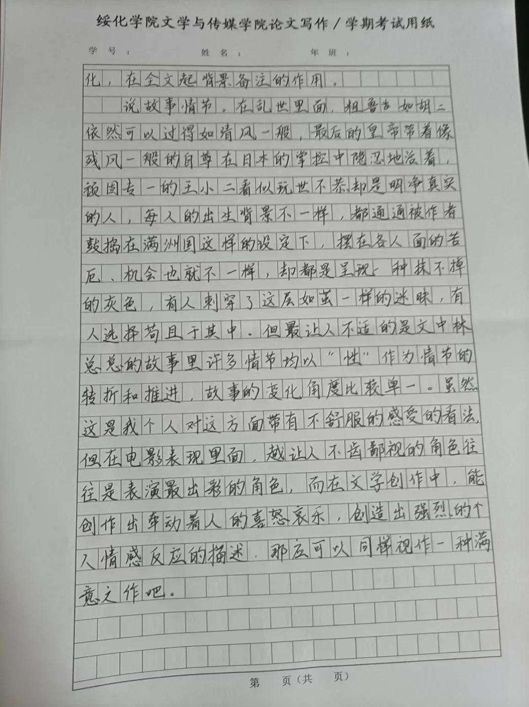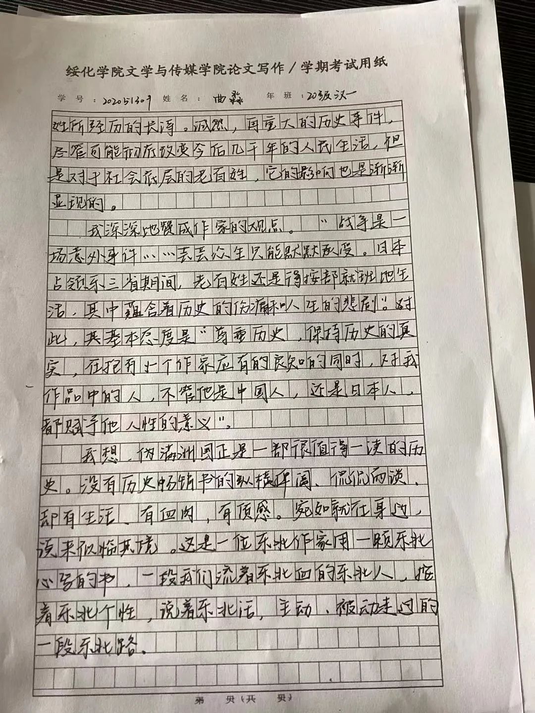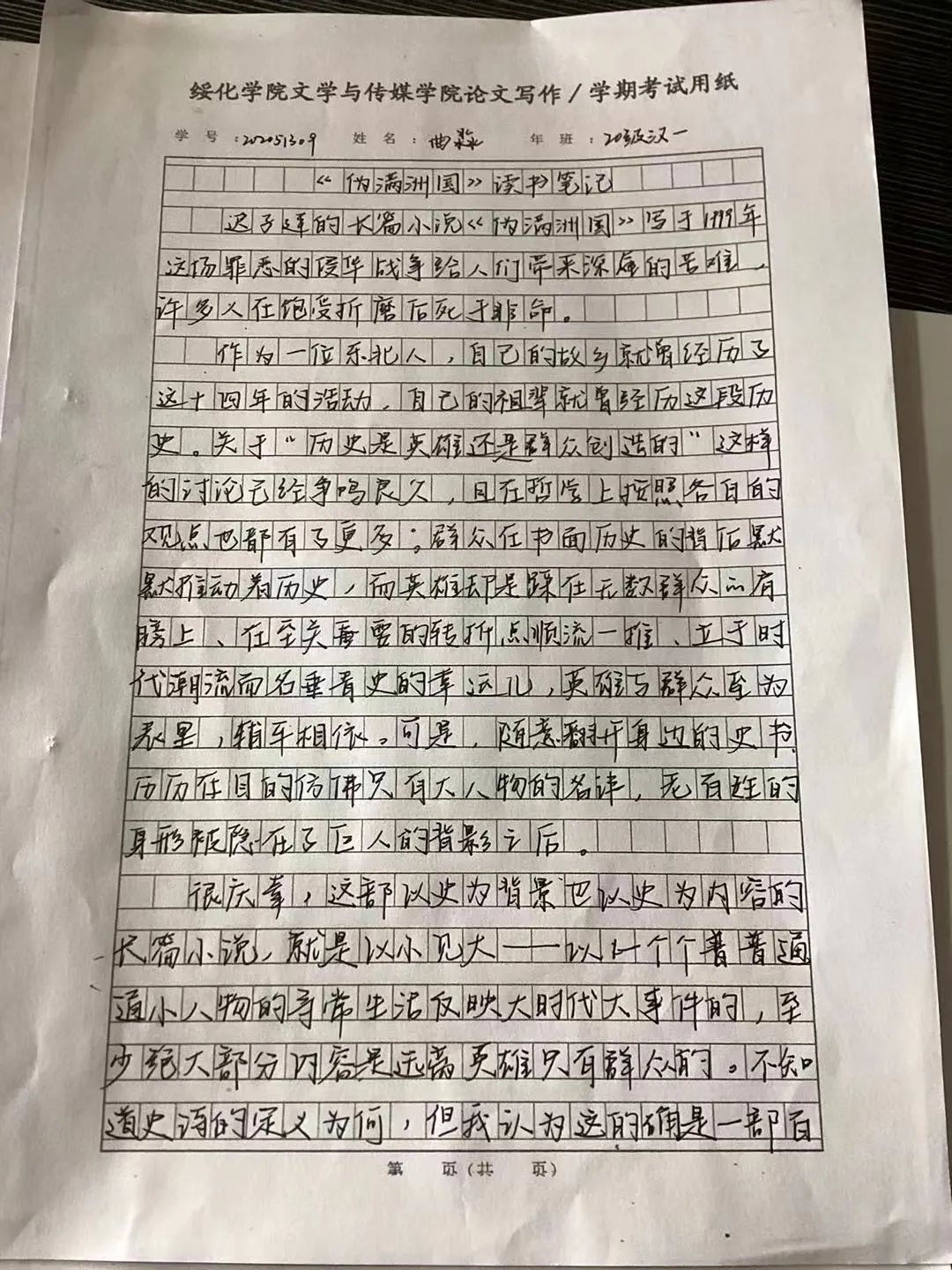 2020级汉语言文学一班 曲淼