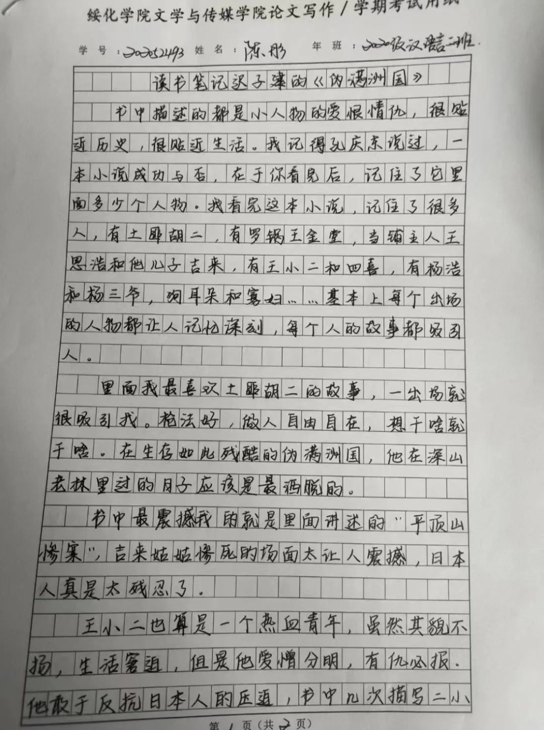 2020级汉语言文学二班 陈彤
