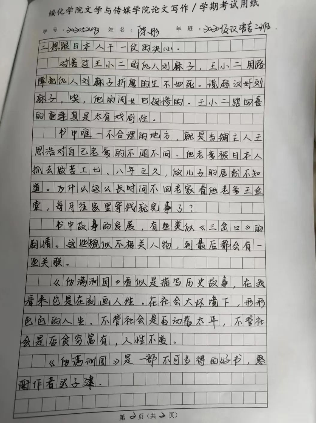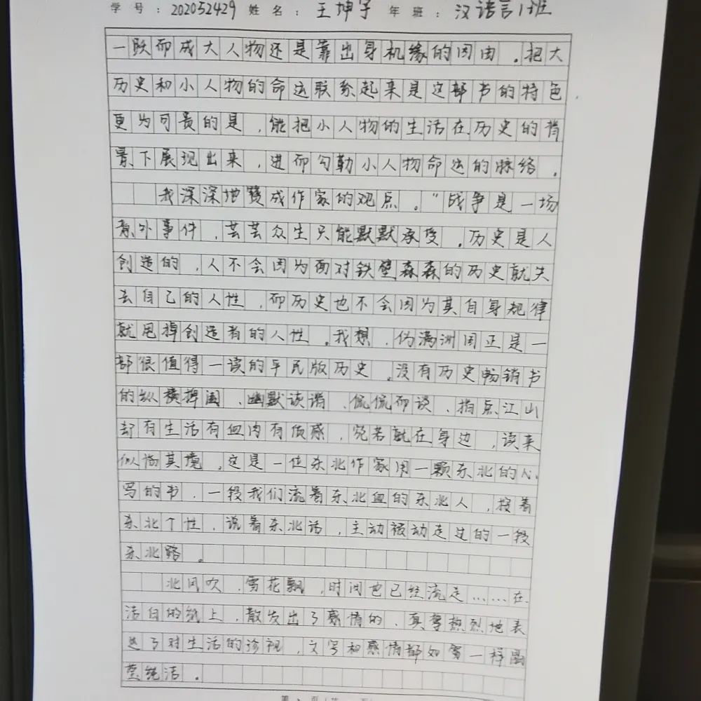 2020级汉语言文学一班 王坤宇