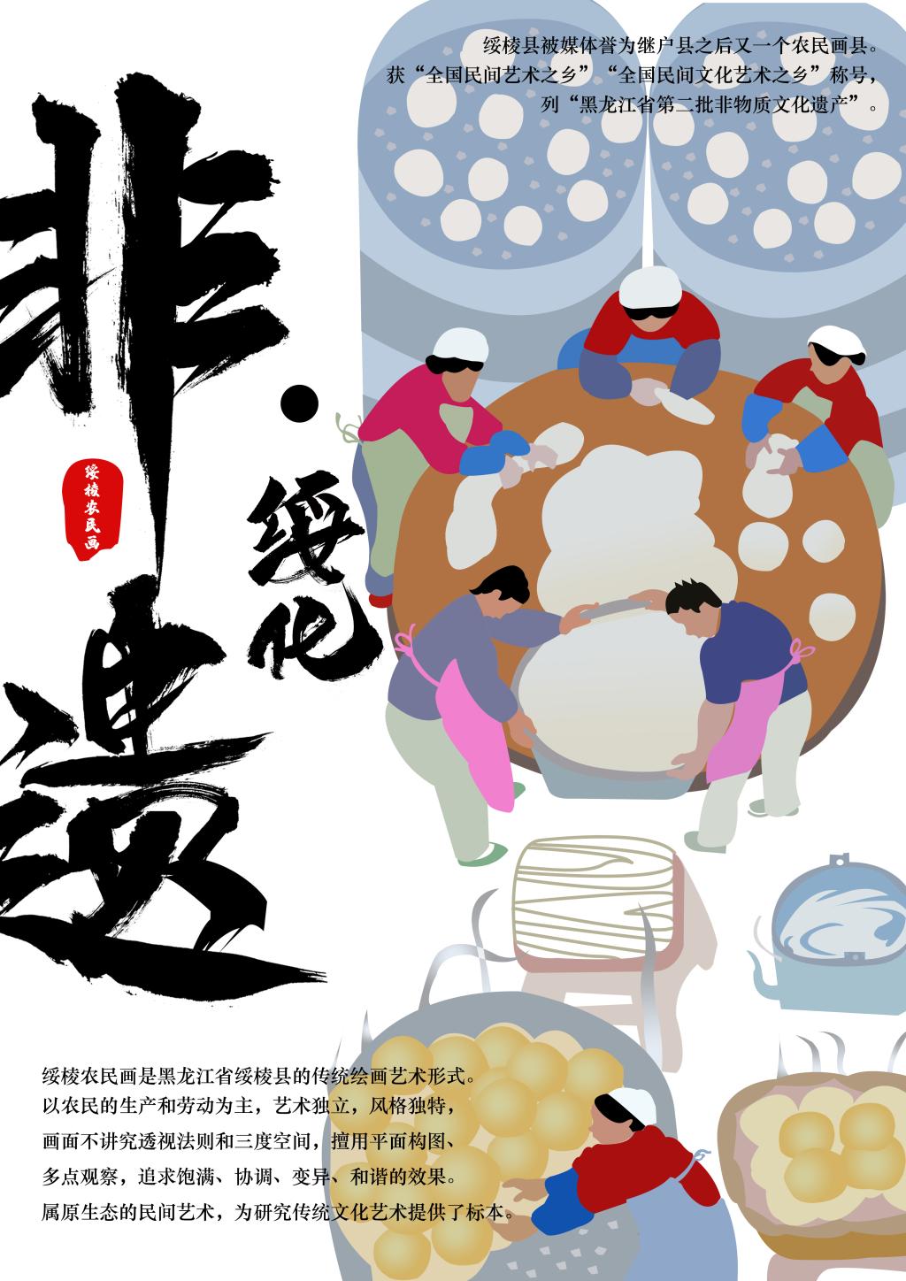 今天展播新媒体海报设计一等奖艺术设计学院视觉传达设计专业杨贺喃的作品:《非遗·绥化》