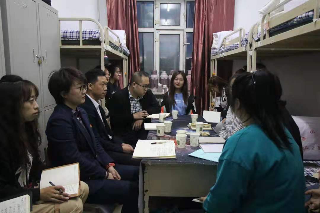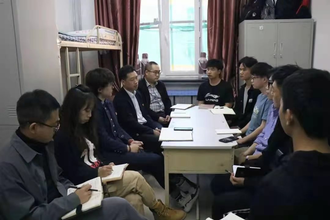 为进一步深化党史学习教育的深远意义,切实做好学生的知心人、引路人、暖心人。5月13日晚,欧冠官方网站党总支书记唐国忠、党总支副书记赵林楠带领全体辅导员深入学生公寓,全面了解学生的课余文化生活,了解学生困扰,纾解学生难题。