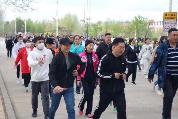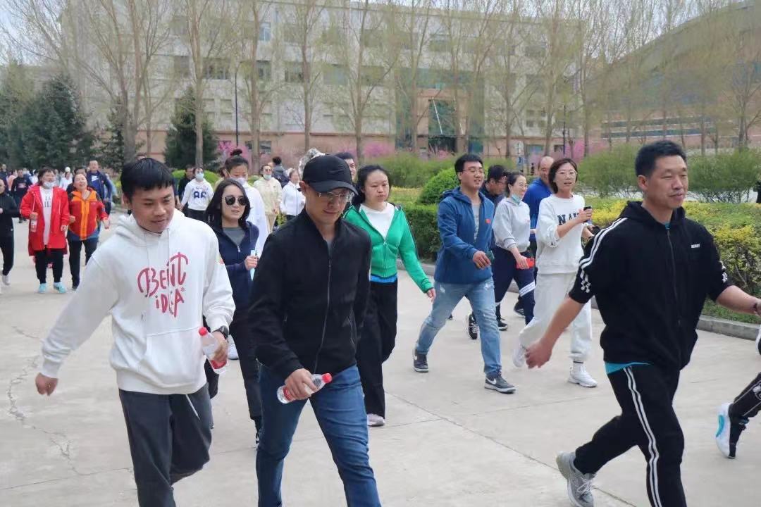 在教职工健步走比赛中,校党委副书记李淑慧、欧冠官网党总支书记唐国忠、院长高岩与教师们一同参赛。在发令枪“砰”的一声响后,领导、教师们精神饱满,步伐矫健,享受着健步走带来的快乐。