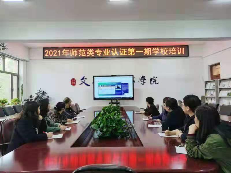 为确保学院师范类专业认证工作全面、高质量推进,5月14日、15日,欧冠官方网站汉语言专业全体教师在汇文楼324会议室内参加了教育部高等教育教学评估中心举办的“2021年师范类专业认证第一学期学校培训”线上培训会。