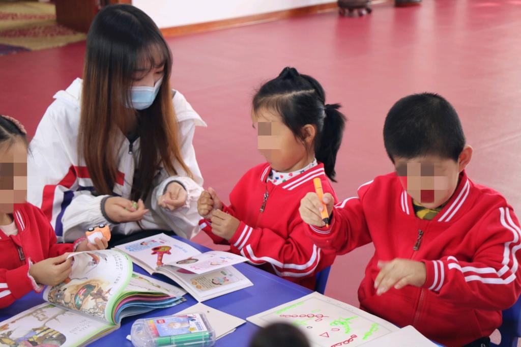 小方形桌子旁,孩子们围坐一旁,志愿者声情并茂地与孩子们一起进行手工活动,和孩子们融到一起,和他们一起写字、画画,捏橡皮泥,由此团队成员也发自内心的感受到自闭症儿童和我们没有什么不一样,只是他们缺少关爱,这也更加坚定了志愿者们实践的决心。志愿者们为生活在特殊儿童教育中心里的孩子们带去心灵上的慰藉,让他们感受到社会的温暖,也呼吁更多的爱心人士,关注这特殊的群体。