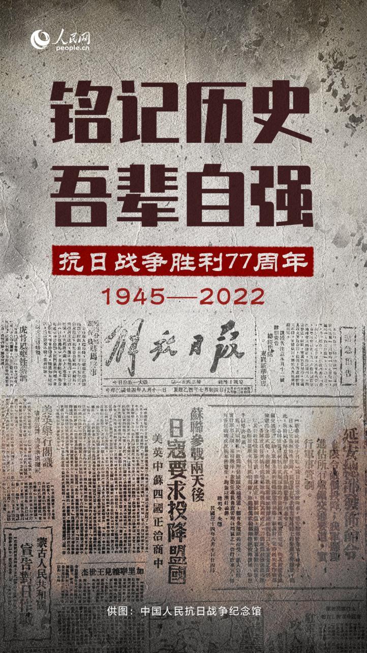 77年前的今天中国人民经过14年浴血奋战打败了日本军国主义侵略者取得了中国人民抗日战争的伟大胜利