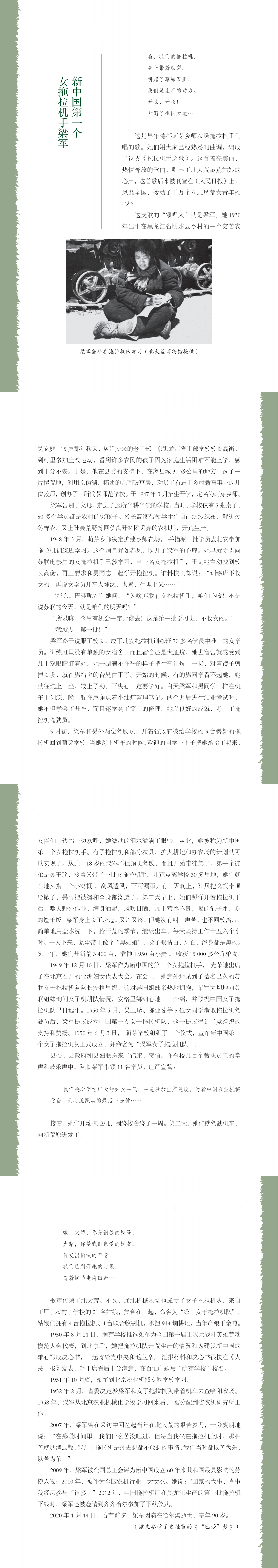 新中国第一个女拖拉机手梁军