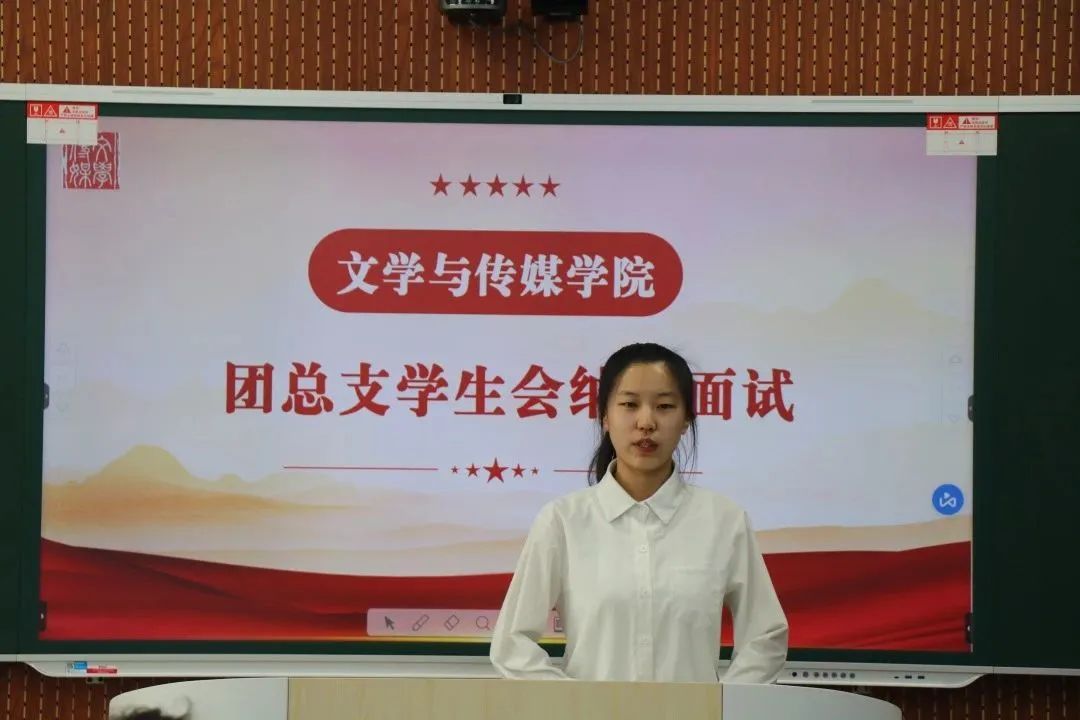 面试开始,主持人向参会人员介绍了今天的面试流程。随后,同学们在自由演讲中详细地介绍了自身优势及工作经验,表明了加入学生会的愿望及克服困难的决心。在面试过程中,同学们充分展现出了良好的个人素质和临场发挥能力,给老师、学生干部们留下了深刻的印象。