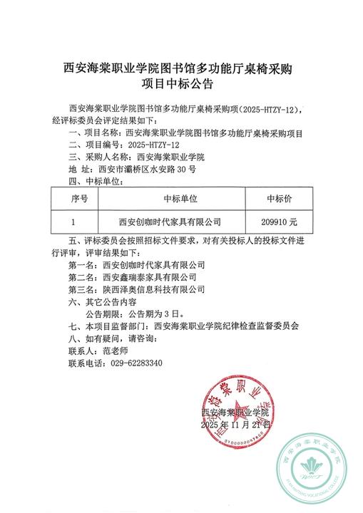 bat365正版唯一官网图书馆多功能厅桌椅采购项目中标公告