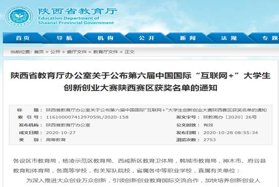 10月28日,陕西省教育厅办公室公布了第六届中国国际“互联网+”大学生创新创业大赛陕西赛区获奖名单。我院参赛项目“聆听心灵的声音”荣获职教赛道铜奖。