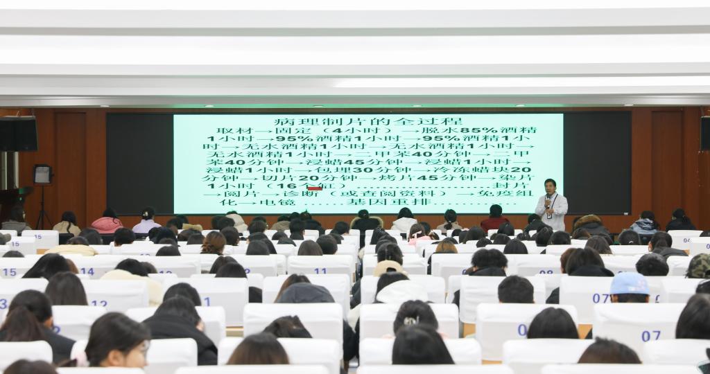 于健康理念蔚然成风、医学知识备受追捧之际,12 月 19 日下午,医学技术系诚邀深耕病理学近三十载、成果卓著的陈大仓教授,开讲专业盛宴,医技系 300 余师生齐聚学院学术报告厅。陈教授以深厚学养与丰富阅历,叩响 “美丽与健康:从饮食到病理的解析” 知识扉页,引领大家穿梭医学迷宫。