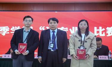 接下来,与会领导依次给受到表彰的师生进行了颁奖。其中,2023年秋季学期“说专业”比赛获奖教师6人;第九届互联网+大学生创新创业大赛校赛获奖项目,一等奖2项、二等奖5项、三等奖7项、优秀奖10项、优秀组织奖1个;2023年“外研杯•国才杯”英语挑战赛校赛获奖学生12人。
