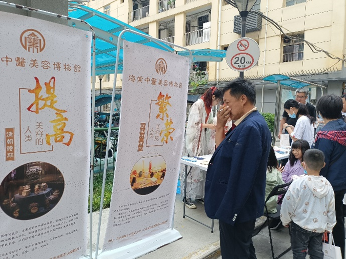 在社区里设立中医美容发展史的介绍展牌,从中医美容的萌芽时期到现代中医美容,逐一介绍中国历史上中医美容璀璨的光辉历史,让社区的居民们不用专门跑到中医美容博物馆就可以接触到中国中医美容的奥秘。