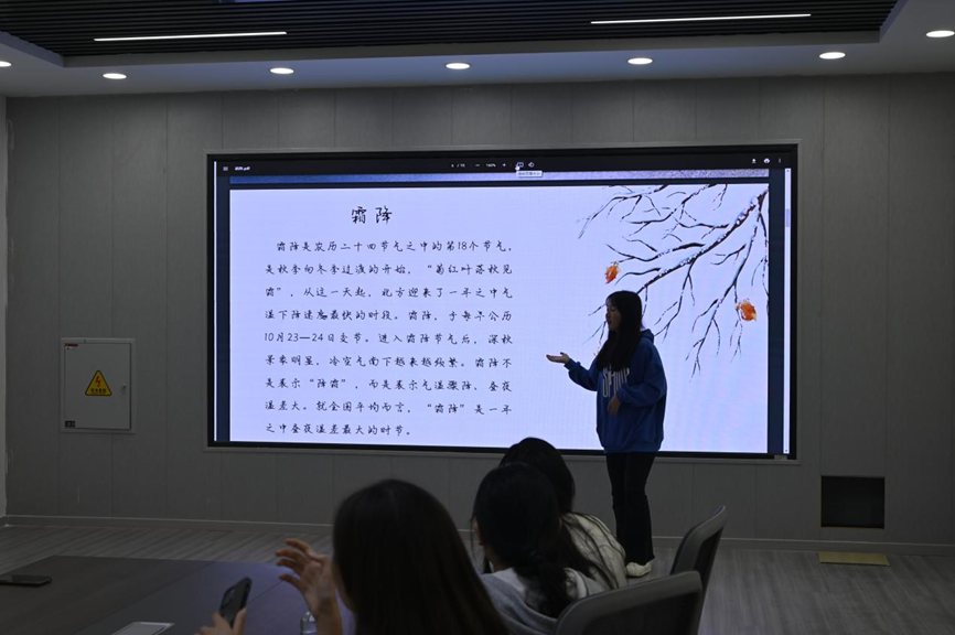 本馆举办与二十四节气相关的展览,通过展示图片、视频等来向大家介绍霜降节气的背景和意义。在博物馆中你可以了解到关于霜降的科学知识、习俗、历史等。让大家欣赏诗词的同时,更深入的了解霜降的科学和文化含义。