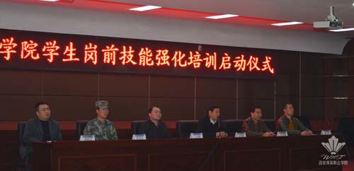 bat365正版唯一官网技师学院2014级学生经过一年半的在校学习,即将奔赴全国各地进行实习,为了提高实习质量,增强学生岗位适应能力,促进实习期间学生的有效管理。11月29日在学术报告厅特召开了“学生岗前技能强化培训”启动仪式。