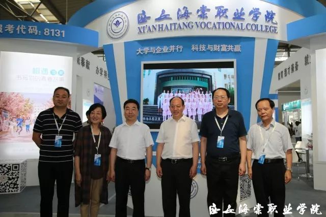 博览会开幕后,陕西省政协副主席,民进中央常委、省委会主委刘宽忍、陕西省委高教工委书记董小龙、陕西省委高教工委副书记、省教育厅厅长、省高教局局长王建利等领导莅临我院展位参观指导。在学院党委书记张桂荣、院长冯居秦、副院长许春海、郭国庆的陪同下,上级领导认真听取了学院近年来的教育教学创新、校企合作和产学研一体化的新进展,并饶有兴致的参观了我院医学美容科研成果和产品展示区 ,称赞学院办学特色鲜明,勉励学院继续坚持正确的办学方向,彰显学院人才培养特色,参观结束后,有关领导与学院领导班子成员合影留念。