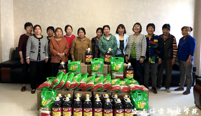 工会人员向工勤人员发放大米、食用油等慰问品。职工们纷纷表示,将继续努力工作,用实际行动回报学校。