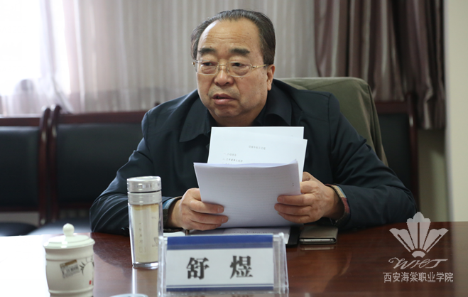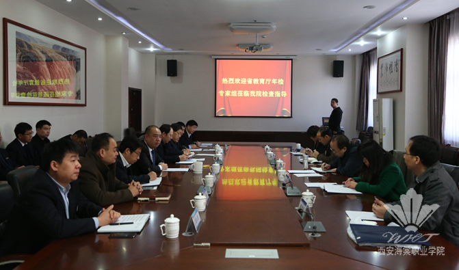 汇报会在我院行政楼一号会议室举行,我院理事长王卓,院长冯居秦,副院长吕波、王景洪、许春海、赵景利、谢元龙及教务处、学生处、人事处、财务处等相关部门负责人参加了会议。