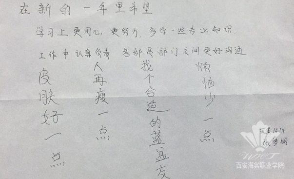 2016年已进入倒计时,新的一年即将来临,在这辞旧迎新的日子里,大家都纷纷盘点过去,展望未来,许下了新的一年的愿望。下面小编整理了一些大海棠师生2017年新年愿望卡,我们一起来看看他们的愿望吧。