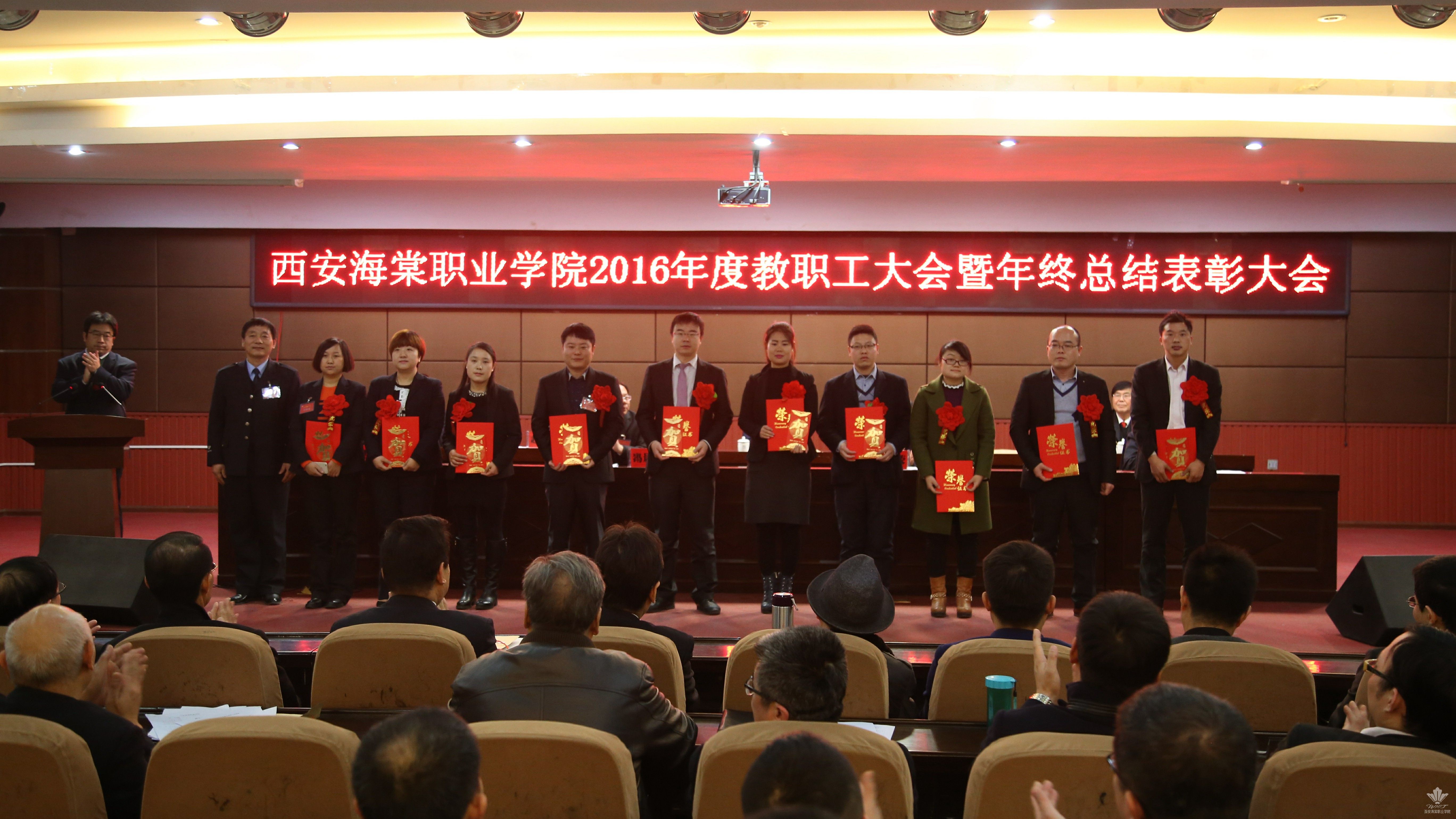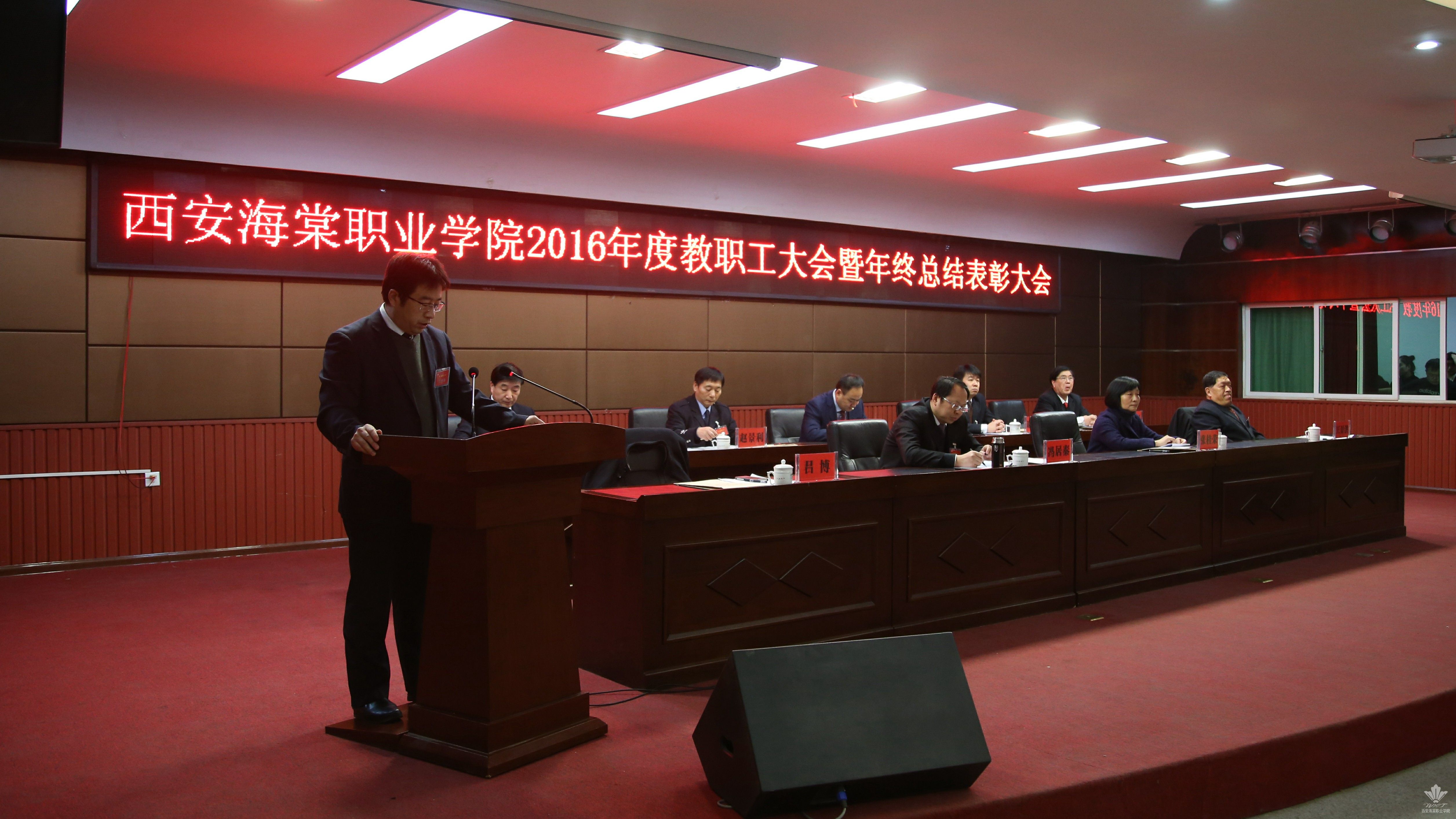 2017年1月8日,为期一天的bat365正版唯一官网2016年度教职工大会暨年终总结表彰大会在学院学术报告厅隆重召开。学院理事长王卓,院长冯居秦,党委书记张桂荣,副院长吕波、王景洪、赵景利、许春海、谢元龙,巡视员王爱民、党政办主任郭鹏等领导出席会议,239名正式职工代表、250余名列席代表参加大会,会议由党委副书记、副院长吕波主持。