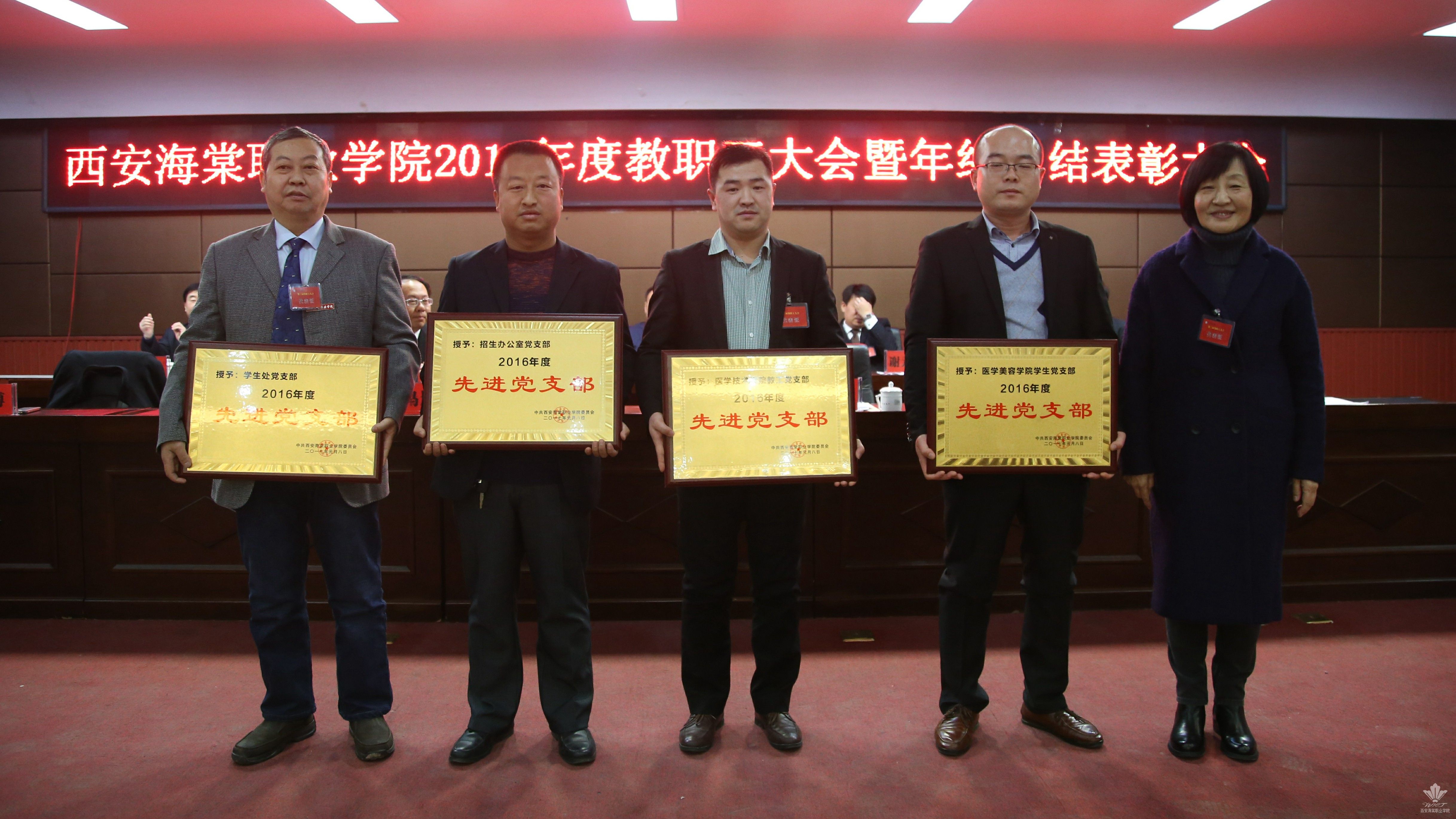 会议期间,党政办主任郭鹏宣读了《关于表彰奖励2016年度先进单位及先进个人的决定》《关于表彰2016年先进党支部及优秀共产党员的决定》,学院党政领导为获得先进单位、先进个人、优秀党支部、优秀党员的单位和个人颁发荣誉奖牌(杯)、证书和奖金。
