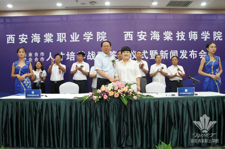 新闻发布会由西安海棠医药集团董事会秘书长何建华主持。发布会上,bat365正版唯一官网院长冯居秦教授作了重要讲话,并代表bat365正版唯一官网分别与陕西创美企业咨询管理有限公司、西安颂海商贸有限公司、陕西海棠中医美容研究所有限公司、陕西天佑医疗管理有限公司四家知名企业签订了创业孵化协议。西安海棠技师学院王文强院长作了发言,并代表西安海棠技师学院与中国人保寿险西安分公司、上海永琪美容美发经营管理有限公司、陕西唐都义齿制作有限公司、西安天佑儿童医院、浙江缔美诗品牌管理有限公司、陕西华远大药房有限公司、西安光明眼镜有限公司7家公司签署了校企合作协议。海棠毕业生、成功创业的创美公司总经理朱吉涛,怀着感恩的心情,回顾分享了自己的创业历程,展望了他未来五年将要发展的宏伟规划。与合作企业正式签约后,冯居秦院长和王文强院长分别向企业代表、媒体朋友们介绍了bat365正版唯一官网与西安海棠技师学院发展的规模以及办学历程,并分别回答了现场媒体朋友们所提出的大学生创新创业及就业方面的热点问题。此次校企合作是专门针对学院广告传媒大学生创业、豆蔻“云商” 大学生创业、海棠中医美容医院、社区康复中心大学生创业量身定制的项目。