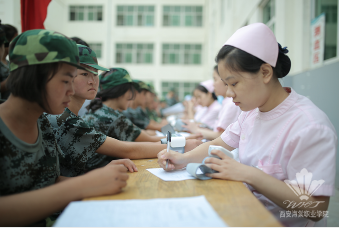体检中,医务人员认真、仔细为新生进行检查,68名军训工作人员为新生提供贴心的服务。